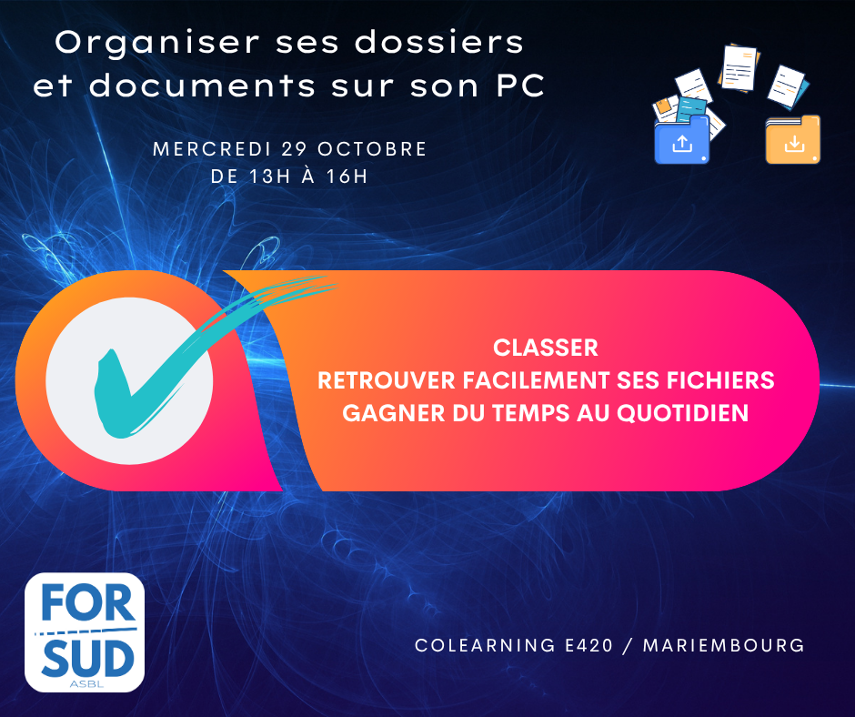 28/10 de 13h à 16h - Formation "Organiser ses dossiers et documents sur son PC"